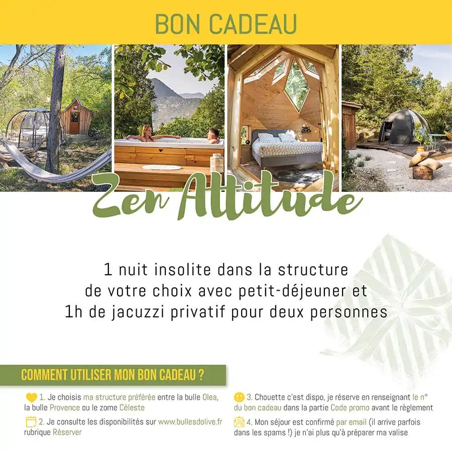 Offrez un bon cadeau pour une nuit insolite avec accès jacuzzi, une belle occasion de faire plaisir à vos proches !